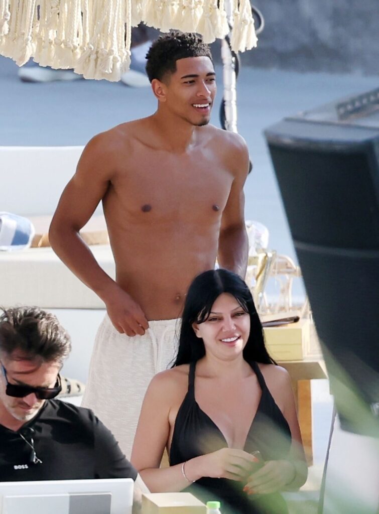 The 19-year-old footballer basked in the sun, going topless and sporting white shorts along with a matching pair of sunglasses. With a beaming smile, he lounged on sunbeds and engaged in conversations with his pals at the SantAnna Mykonos beach club. In a post on Instagram tagging the Greek picturesque Island, Bellingham wrote: “what a place 🇬🇷.”