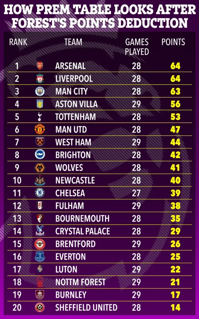With the deduction, Forest’s position in the league takes a nose dive, plunging from 17th place with 25 points to 18th with 21 points, edging perilously close to the drop alongside Luton.