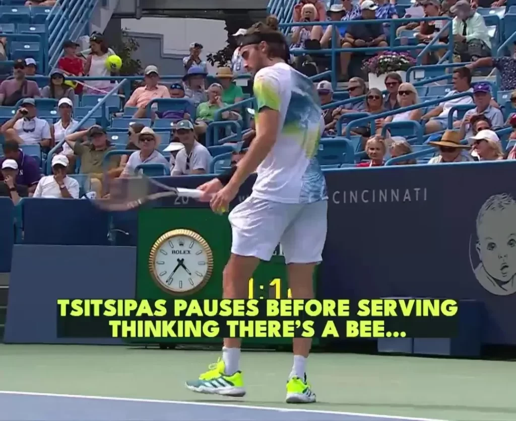 Tsitsipas, who’s no stranger to intense battles on the court, decided to address this unorthodox situation. Marching to the middle of the court, he voiced his concern to the umpire, questioning the appropriateness of the situation. “There’s a person imitating a bee behind me. It’s a buzz right before I serve. Do you think that’s OK?” he quipped.