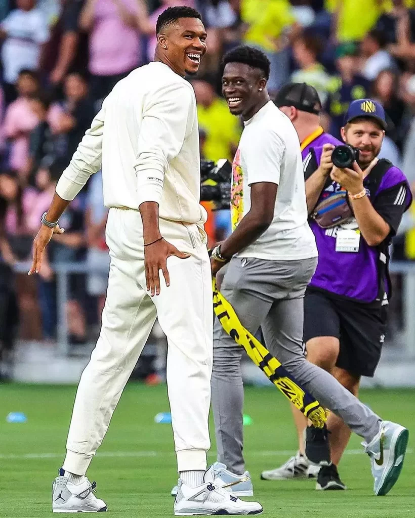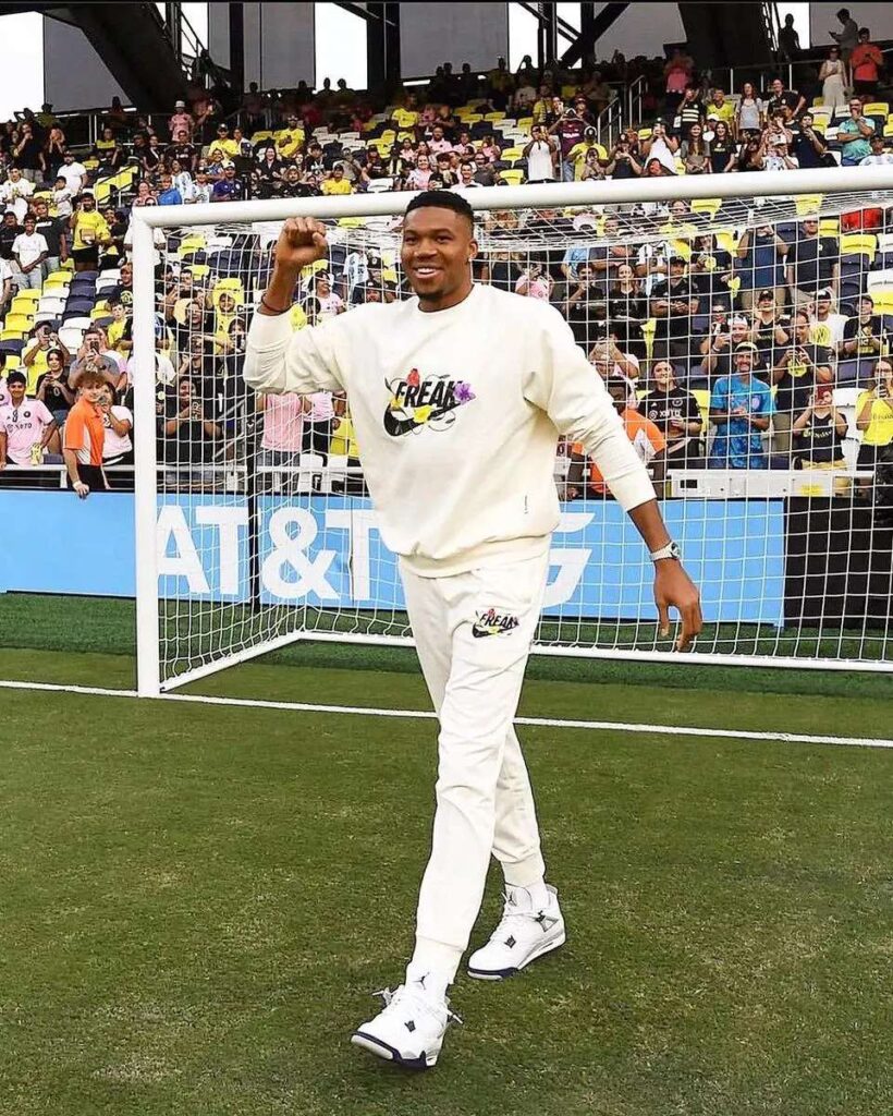 Before his team’s Leagues Cup final against Inter Miami, led by Lionel Messi, Giannis decided to have a little fun on the field. He took shots on goal and surprised everyone by launching a long-distance shot that found the back of the net. And that’s not all – he celebrated the goal in true soccer superstar style, mimicking Cristiano Ronaldo’s iconic celebration. The “Greek Soccer Freak,” known for his basketball dominance, showed he’s got game on the pitch as well.