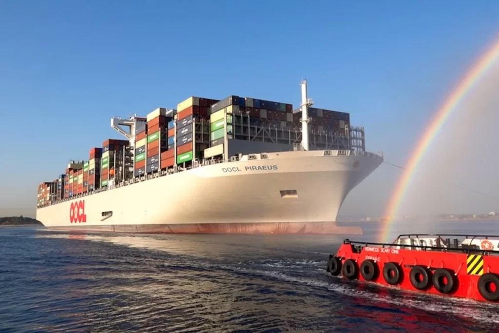 Measuring 399.9 meters in length and 61.3 meters in molded width, the OOCL PIRAEUS has a container capacity of 24,188 TEUs, making it one of the largest container vessels globally, as stated in a press release by PCT. The vessel’s arrival signifies the increasing importance of the Port of Piraeus as a critical link in the new trade route connecting the Far East to Europe and Africa.