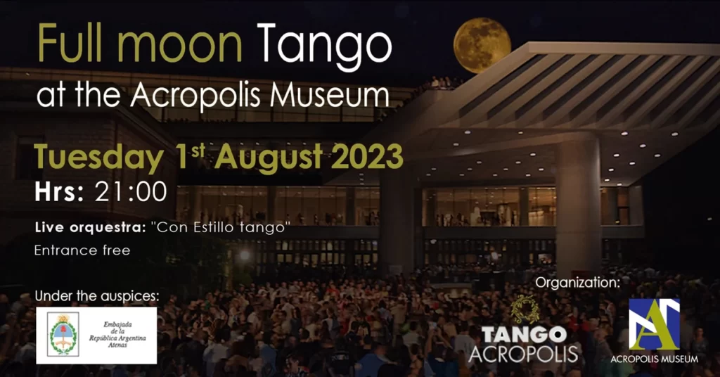 The Acropolis Museum in Athens is celebrating the August Full Moon on Tuesday, 1st August 2023, with an enchanting music and dance event called “Tango Acropolis.” Taking place in the Museum’s entrance courtyard at 9 p.m., the evening promises to be a delightful blend of passion and rhythm.