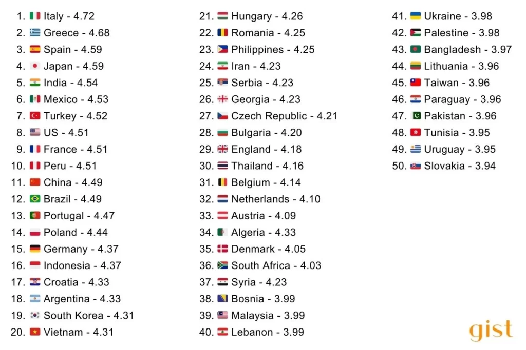 According to votes on Taste Atlas, the usual suspects remain at the top – they’ve slapped Italy right on the throne with a jaw-dropping score of 4.72. Right behind is Greece, strutting its stuff with an impressive 4.68. The bronze medal? Well, it’s a tie between Spain and Japan, both flexing their culinary muscles with a solid 4.59.