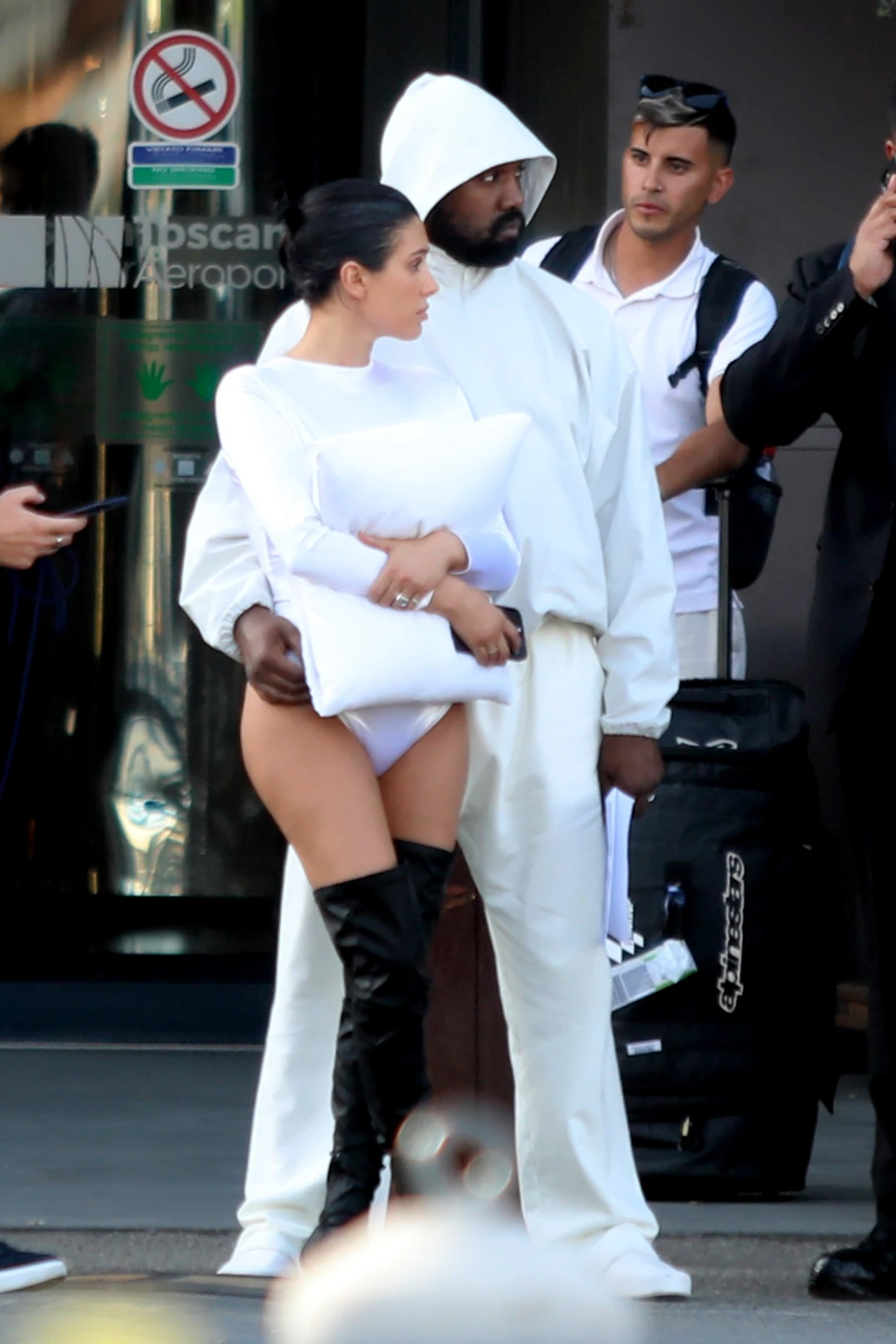 PILLOW WALKBianca Censori Rocks Thong Bodysuit and Pillow Accessory in Italy with Kanye West