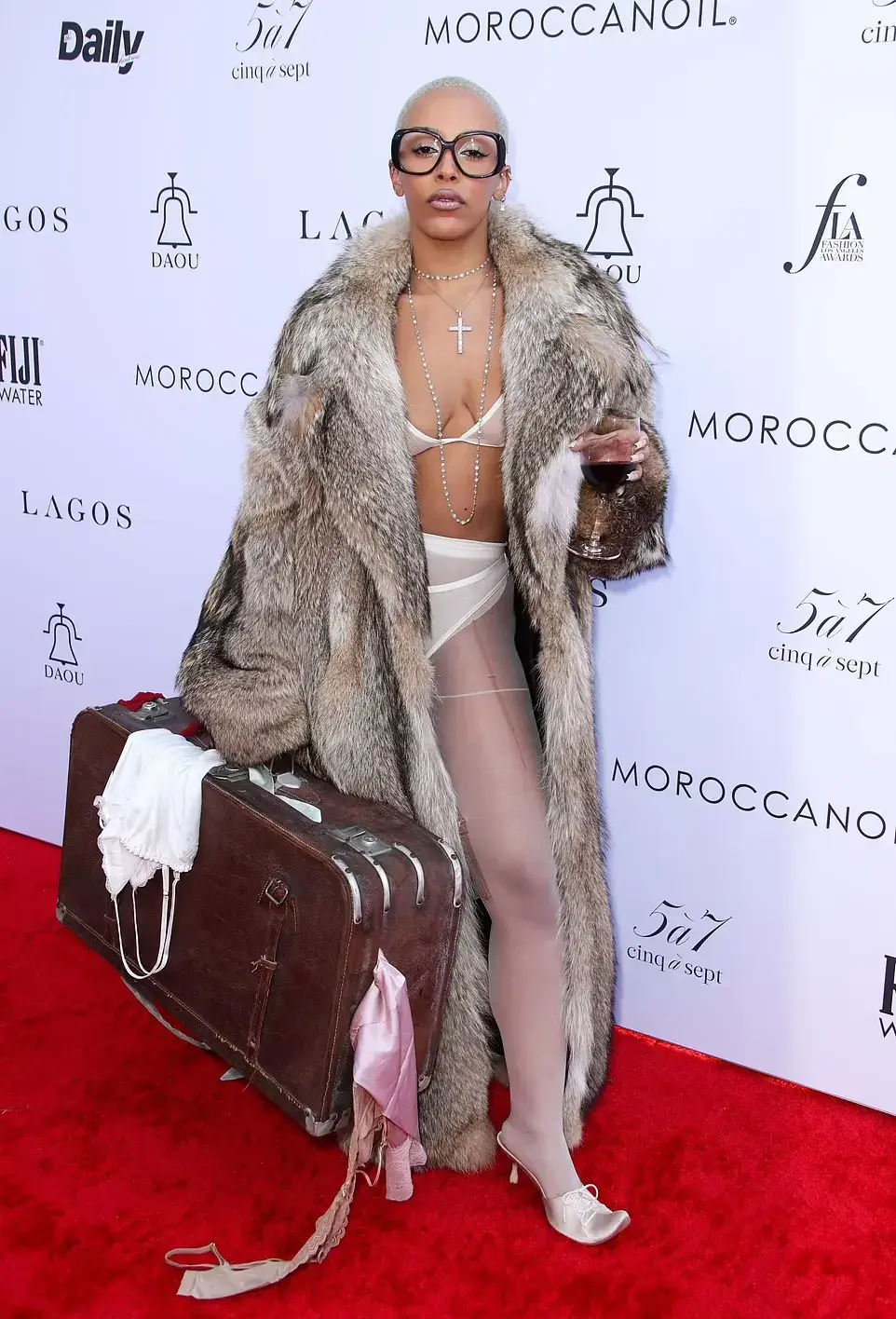 In a scene straight out of Hollywood glamour meets avant-garde chic, music sensation Doja Cat made heads turn at the Daily Front Row Awards in Los Angeles with her unconventional red carpet ensemble.