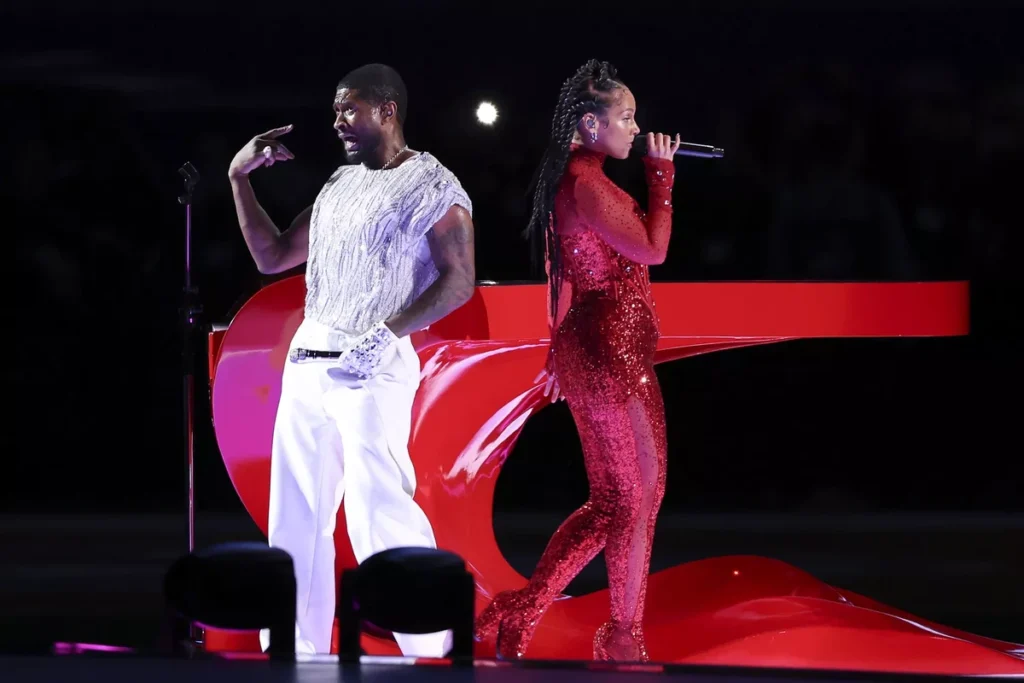 The dynamic collaboration between Alicia Keys and Usher added a memorable chapter to the Super Bowl halftime show, with Usher performing a total of 13 songs during the halftime show.