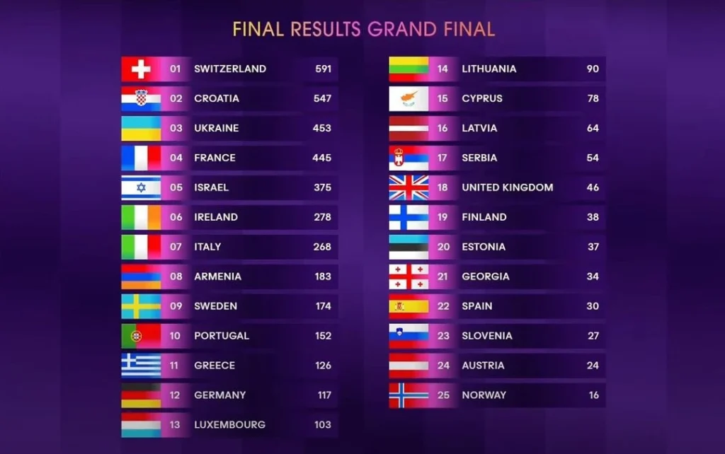 Eurovision 2024 Final Result. | Credit: Eurovision